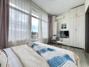 Светлый солнечный апартамент с прекрасным балконом, закрытым двором с большой парковкой, детской площадкой, комфортен для размещения семьи с 1-2 ребенком. Имеретинская набережная в 30 мин ходьбы, орнитологический парк в 20 мин ходьбы. Рядом есть магазин "5", магнит, казачий рынок.