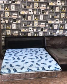 В одной комнате двуспальная кровать 140 см, шкаф для одежды, стол. В другой комнате раскладной диван, 2 комода, шкаф для одежды, ТВ с онлайн кинотеатром Wink . Интернет быстрый. На лоджии односпальный диван и велотренажер. Москитные сетки на всех окнах.