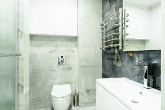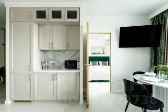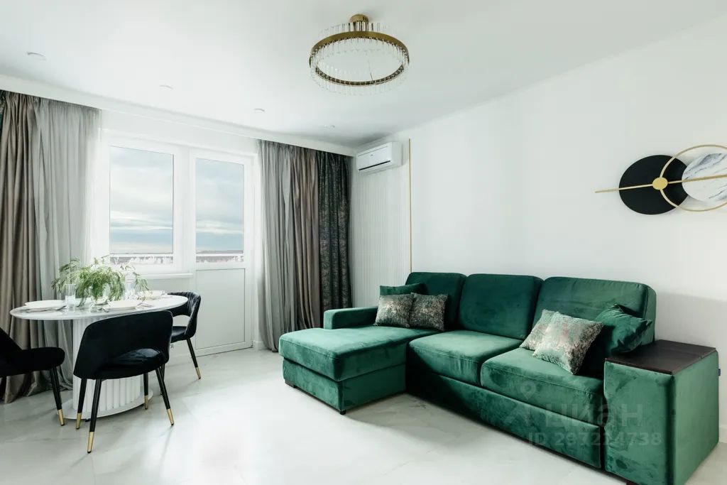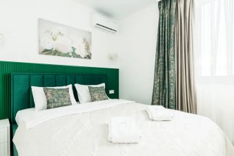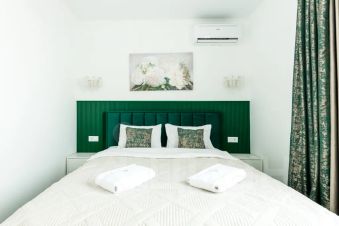 Просторные апартаменты в минималистичном стиле с изумрудными акцентами и отделкой под мрамор. Включают: