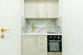 Кухонную зону с мраморными и золотыми элементами