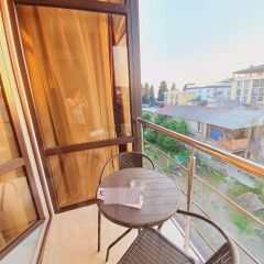 Квартира расположена на 3-ем этаже дома и рассчитана на размещение до 4-х человек. Внутри двуспальная кровать, кухня-гостиная с раскладывающимся диваном, прихожая, совмещённый санузел. В каждой комнате есть плазменный телевизор и кондиционер. На кухне имеется необходимая посуда, холодильник, СВЧ, плита, чайник, посудомоечная машина.