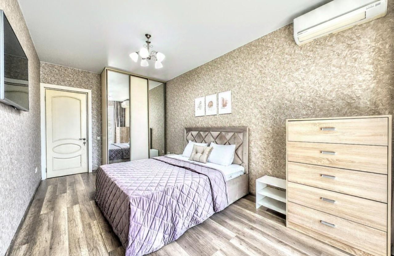 и с кухней, где имеется двуспальный диван. Квартира просторная 75кв.м