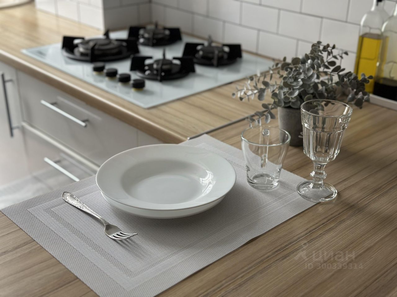 Кухонное оборудование: СВЧ печь, кухонный гарнитур, холодильник, электрический чайник, столовые приборы, посуда и принадлежности, газовая плита.