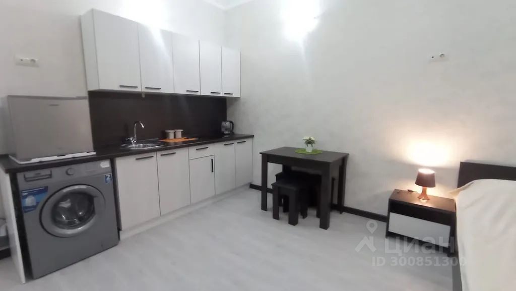 Прекрасные апартаменты в тихом спокойном районе Сочи, поселок Лоо: студия 36 кв. м в апарт-комплексе "Лообоярд" с отдельным входом и всем необходимым для проживания и отдыха: кухонная зона с плитой, холодильником, обеденным столом, телевизором, стульями и посудой; машина стиральная, утюг с гладильной доской, 2 кровати при желании раздвигаются, другие предметы интерьера. Туалетная комната с душем. Теплые полы. Предоставляются комплекты белья и полотенца.