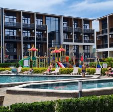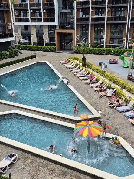На территории комплекса: два бассейна, оборудованные лаунж-зоны, детская площадка, охрана, озеленение, дизайнерское уличное освещение. Магазины, кафе и фруктовые сады Сочи в шаговой доступности от апартаментов.