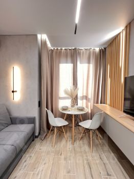 Новая студия с дизайнерским свежим ремонтом 2024 года и с управлением умный дом в ЖК Сочи Парк.