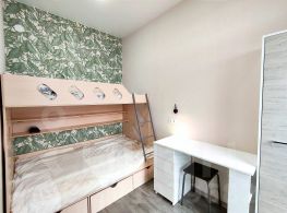 Спальня двухярусная кровать: снизу двуспальная 120 на 200, вверху 90 на 200.