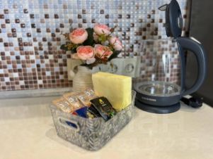 Полностью укомплектована всем необходимым для комфортного проживания: полотенца, постельное белье, посуда, утюг, микроволновая печь, кондиционер, шкаф для хранения вещей, стиральная машинка, душевая кабина, два просторных дивана-кровати (вместимость до 4х взрослых).