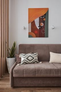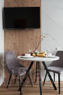 • Размещение до 4-х человек: двуспальная кровать и раскладной диван на двоих, полностью оборудованная кухня, вся необходимая техника: стиральная машина, холодильник, электрическая плита, микроволновая печь, чайник, фен, ТВ, утюг.