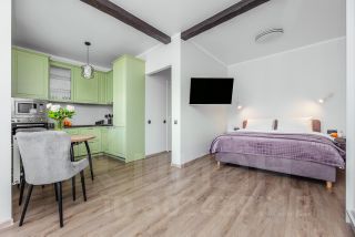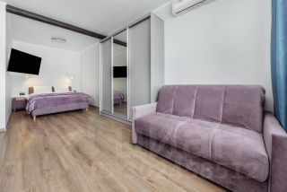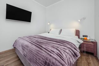 В спальной зоне расположена удобная и комфортная кровать с ортопедическим матрасом, Smart TV который можно перевернуть и в строну кровати и в сторону двухспального дивана-кровати - комфорт класса, шкаф.