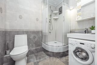 Совмещённый санузел с душевой кабиной, стиральной машиной, феном.