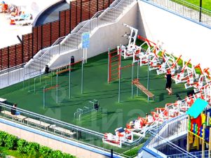 В самом доме находятся "Перекресток", аптека, парковки, детская площадка, теннисный корт, волейбольная площадка, баскетбольная площадка.