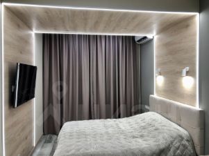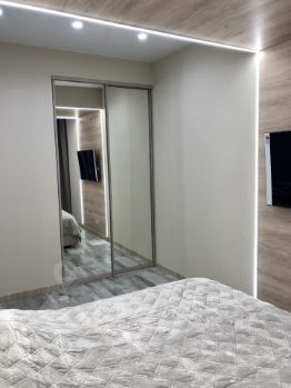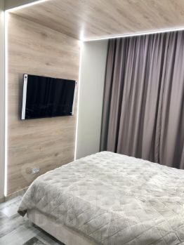 В спальне выход на балкон, есть кондиционер, большой телевизор, гардеробная, шторы блэкаут, высокий матрац и кровать с подъёмным механизмом.