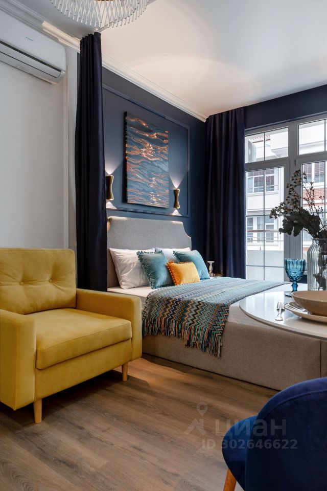 Студия с дизайнерским ремонтом рассчитана на 3 гостей.