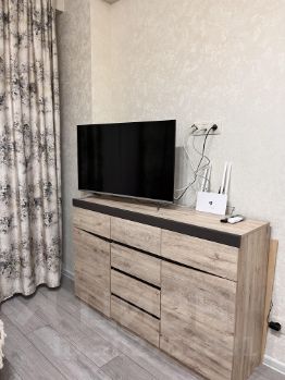 Уютная студия с хорошим ремонтом полностью оснащена всем необходимым: бытовая техника (холодильник, плита, чайник, стиральная машина, свч, TV, фен), утюг, посуда, сушилка для белья.