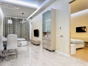 Этот апартамент находится по адресу Черноморская улица, 4Б - Верещагинская Дача Верещагинская Дача - Апартамент 502 - расположен в самом центре Сочи! Благородный трехкомнатный апартамент площадью 94 м² расположен на 5 этаже Безупречно подходящий для семейного отдыха или компании друзей до 6 человек Общая веранда — дополнительное место для отдыха и развлечений, здесь вы найдете барбекю ишезлонги, а с веранды открывается незабываемый вид на море и городские пейзажи Панорамные окна дарят вам захватывающие виды на лазурное море и живописный город Современная система кондиционирования включает потолочную систему и отдельные кондиционеры вспальнях, обеспечивая прохладу и комфорт в каждой комнате даже в самые жаркие дни Две полностью оборудованные спальни — каждая из них оснащена большой двуспальной кроватью,вместительным шкафом и телевизором, всесоздано, чтобы обеспечить вам максимальный комфорт и уют во время пребывания В гостиной вас встретит просторный раскладной диван лазурного цвета, придающий интерьеру свежесть Просторная кухня оснащённая всем необходимым для кулинарных экспериментов Две ванные комнаты обеспечат дополнительный комфорт во время вашего пребывания. Просторный шкаф обеспечивает достаточно места для хранения ваших вещей Современные удобства:Высокоскоростной Wi-FiКондиционеры, кофемашина и телевизорыСтиральная машина и посудомоечная машинаХолодильник, микроволновая печь и чайникЭлектрическая плитаФен, утюг, гладильная доска, сушилка для белья Мы рады гостям с домашними животными — вашим питомцам будет уютно у нас Ждём вас в наших апартаментах, наполненных комфортом, современным дизайном и незабываемым впечатлением от отдыха
