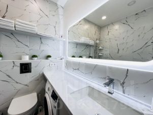 Ванная комната оснащена всем необходимым, включая ванную, полотенцесушитель, раковину и зеркало.