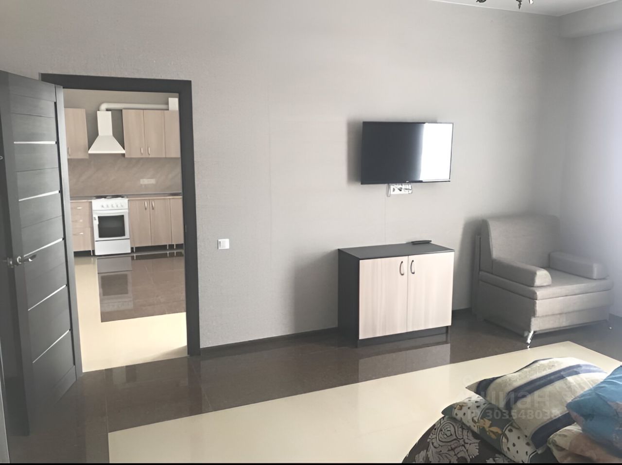Сдам на длительно полуторку большую светлую с новым ремонтом в новом четырех этажном клубном доме. Огромная спальня с балконом длинным и кухня-гостинная.