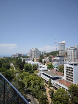 Вокруг дома находятся просторные парки, скверы, Морской вокзал, Зимний театр, Дендрарий и продуктовые магазины