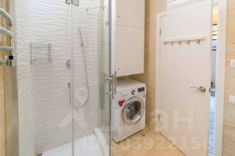 Ванная комната оснащена всем необходимым, включая душевую кабину, полотенцесушитель, раковину и зеркало