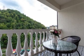 Комплекс расположен в живописном и экологически чистом районе Сочи, с благоустроенной набережной и лавочками вдоль горной реки.