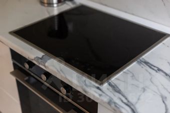 Кухонная зона полностью укомплектована: чайник, столовые приборы и посуда, электрическая плита, духовой шкаф и посудомоечная машина.