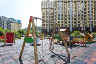 Детские площадки, футбольное поле, уличные тренажеры и кофейня.