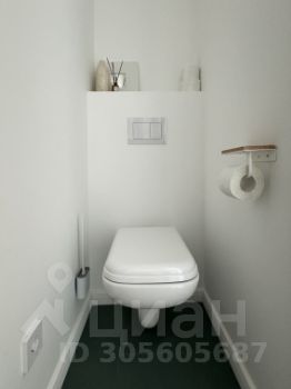 В санузле: ванная (170 см), удобная овальная раковина, полотенцесушитель, стеллаж для хранения косметики. Унитаз стоит в нише и расположен так, чтобы принимающий ванну не видел, того кто восседает на унитазе. Стиральная машинка с большой загрузкой и бойлер на 100 литров.