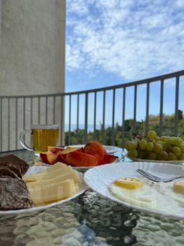 В спальнях кровати с ортопедическими матрасами, шкафы купе, рабочее место. В одной имеется выход на балкон с прямым панорамным видом на море.