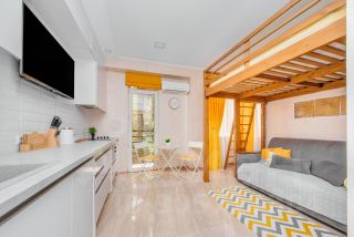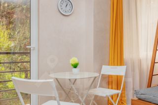 Дизайнерская милая квартирка ждёт своих гостей. В квартире все продумано до мелочей. Здесь будет комфортно разместиться семье с двумя детьми .Дети с удовольствием освоят чердак кровать(160*200). Родители с комфортом разместятся внизу( также 160*200).Продуманный выкатной стол не будет мешать, когда в нем не будет необходимости. Поработать можно за широким подоконником,наслаждаясь видом в парк. Большой шкаф позволит сложить все ваши вещи.