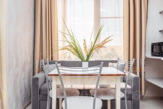 4) Удобства: принадлежности для ванны, полотенца, постельное бельё, посуда, столовые приборы, утюг, сушилка для белья.