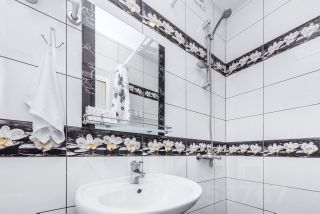 3) Ванная комната: раковина, зеркало, просторная душевая.