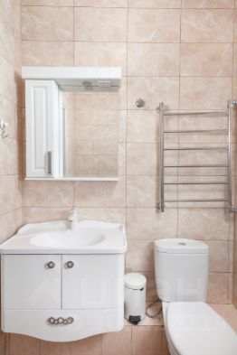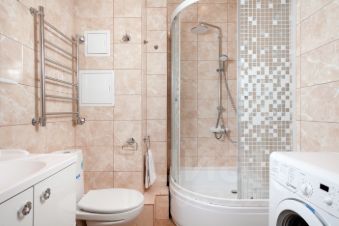 Совмещённый санузел с душевой кабиной, стиральной машиной, феном.