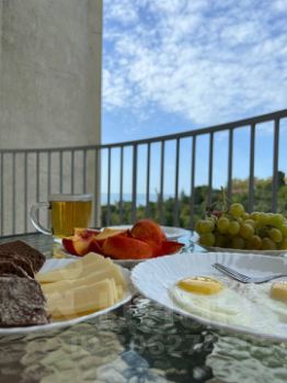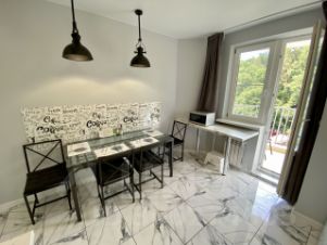 Просторная кухня 15 кв м с выходом на большую лоджию с видом на море.