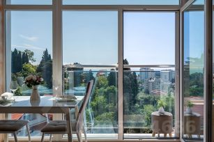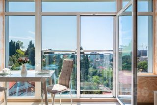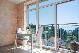 Квартира расположена рядом с Дендрарием и предлагает потрясающий прямой панорамный вид на море с выходом на балкон.