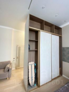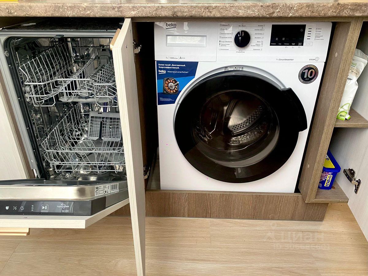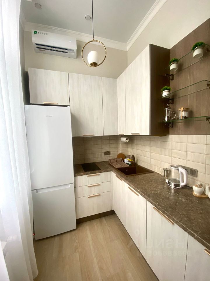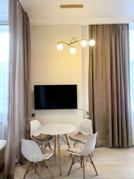 В квартире сделан дизайнерский ремонт, есть вся необходимая мебель и техника для комфортного проживания. Установлены кондиционер, холодильник, посудомоечная и стиральная машины, а также телевизор. Планировка студии продумана до мелочей: уютная зона для отдыха, функциональная кухня площадью 10 кв.м. и совмещённый санузел с душевой кабиной.