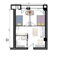 2 изолированных комнаты и кухня-гостиная, планировка на фото.