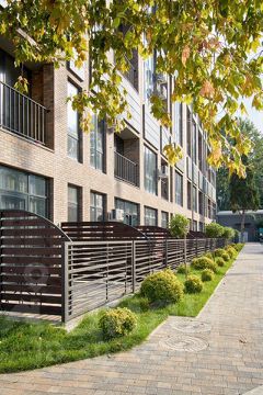 Во дворе детская площадка, красивое озеленение.