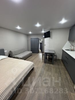 В студии :кухня, собственный санузел , обеденная зона , диван , двуспальная кровать .