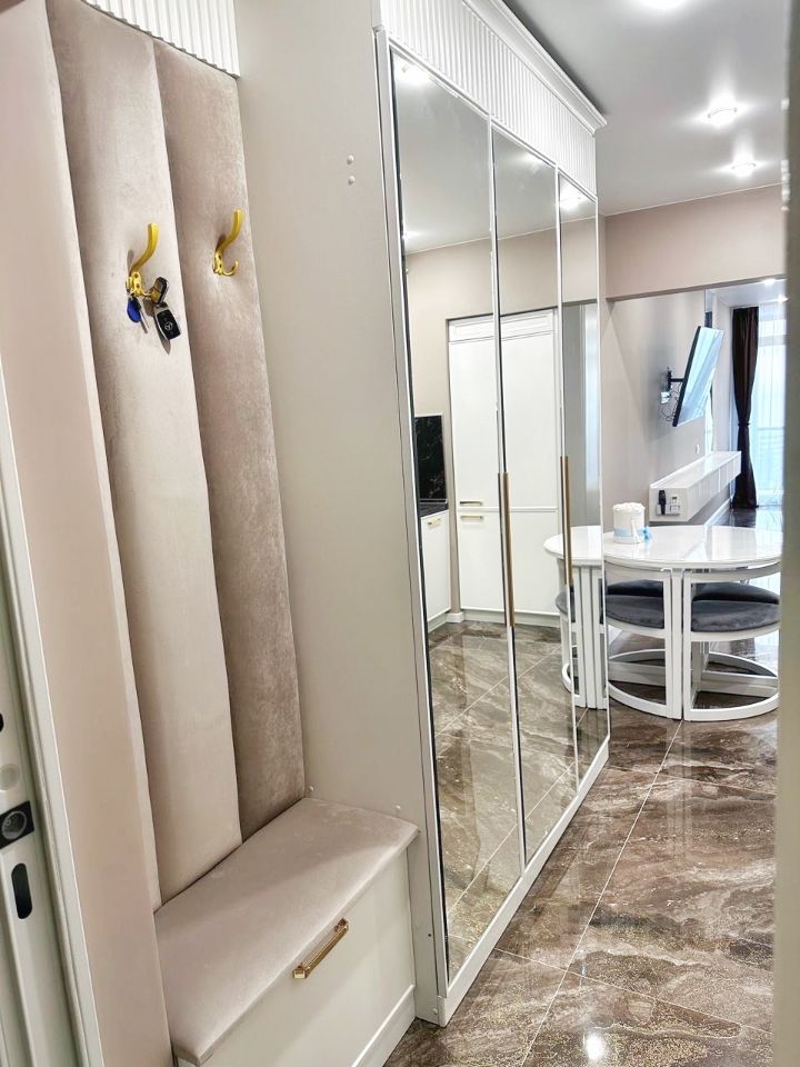 Квартира находится на 14 этаже жилого комплекса Морская симфония и имеет прямой вид на море.