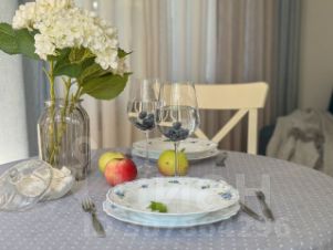 Необходимая бытовая техника и посуда (сплит-система, посудомоечная машина, стиральная машина, чайник, СВЧ, плита, духовой шкаф, холодильник, посуда для приготовления и сервировки, гладильные принадлежности).