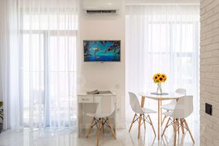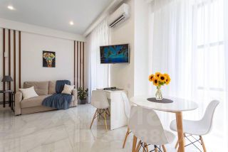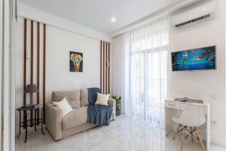 Стильный современный ремонт и мебель. Двуспальная кровать и диван. TV, Wi-fi, кондиционер. Панорамное остекление, на балконе есть мебель для приятного время препровождения. Кухня оснащена: плитой, микроволновкой, посудомоечной машиной, холодильником, чайником, столовыми приборами и посудой. Также есть стиральная машина, фен, утюг, сушилка для белья.
