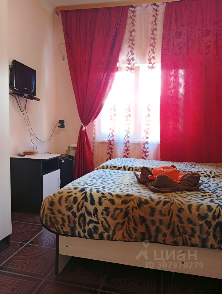 14 кв. м., до моря 1 минута ходьбы. Остановка АЗС Фрегат, 3 минуты, станция "Известия", 3 минуты ходьбы, множество столовых, магазинов, в т. ч. и сетевые.