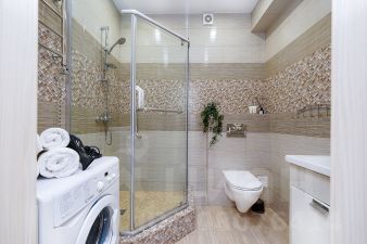 4. Совмещенный сан-узел: душ, туалет, полотенцесушитель, большое зеркало с подсветкой.