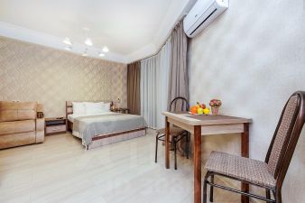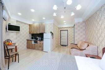 Рядом с апартаментами расположены столовые, кафе, рестораны, кофейни, сетевые магазины Магнит, Пятерочка, банкоматы, ярмарки местной продукции свежие овощи фрукты по сезону.