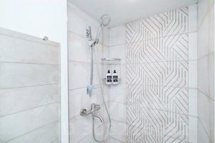 душ, водонагреватель, стиральная машина, чистые полотенца, гель для душа, шампунь, мыло, фен, гладильные принадлежности.