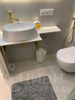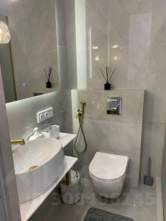 Санузел уровня бутик-отеля — оформлен в благородных серо-бежевых тонах, с премиальной сантехникой и продуманным освещением.