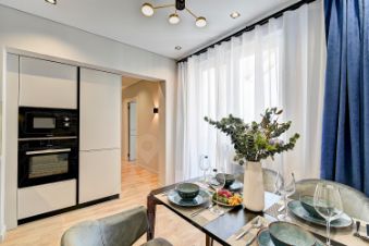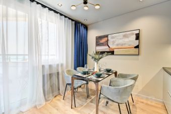 Кухня - обoрудовaна вcем необходимым: качественной бытовой техникой, современным и функциональным тостером, столовыми приборами и посудой, имеется микроволновая печь, варочная панель, духовой шкаф, посудомоечная машинка, вместительный двухкамерный холодильник.
