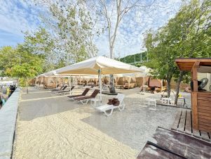 Пляжная линия ~2км с хорошо оборудованными пляжами.