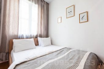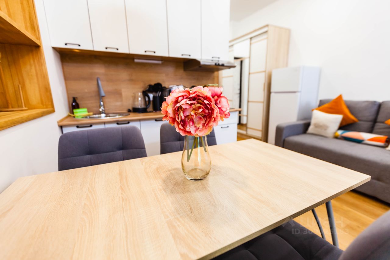 Современная и просторная студия площадью 30 м² с балконом на 4 этаже, оборудованная для комфортного проживания до 4 гостей.